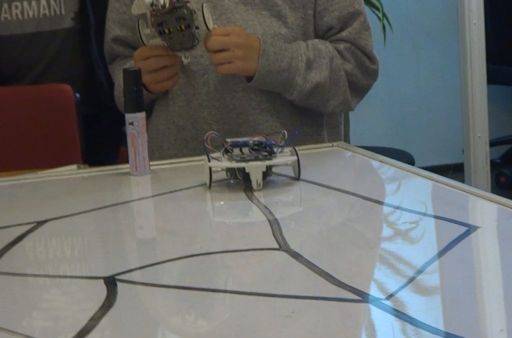 秋葉原教室にヴイストン社の方が見学にいらっしゃいました。 投稿日 2021年12月1日 更新日 2022年3月10日 著者 sjuku_wp カテゴリー ブログ 秋葉原教室は文化の日の関係で1週間ずれての授業です。11月はロボットプログラミング~人工知能編~です。この日はいよいよ仕上げです。黒い線をロボットが辿るプログラムをC言語で組んでいきます。このロボットを開発したヴイストン社の営業課長の鷹野さんが見学にいらっしゃいました。鷹野さんも元々は技術の方なので「本来これですよね」が分かっていただけました。授業の後、打ち合せをしましたが、気付けば22時。2時間半も話し込んでいました。